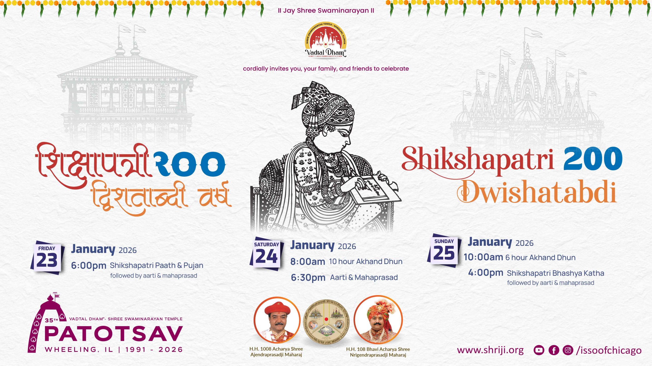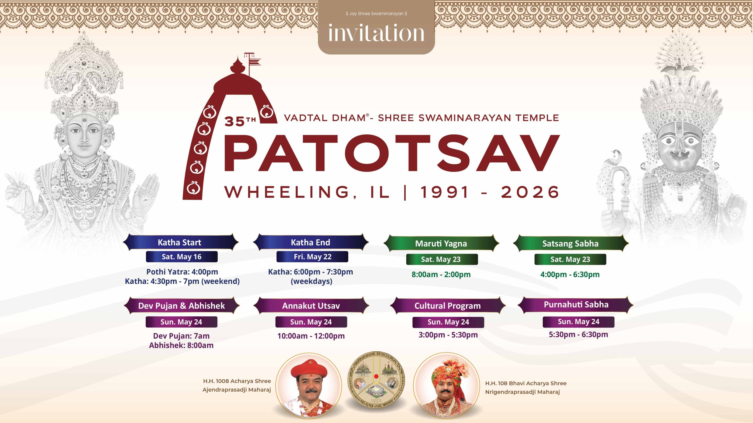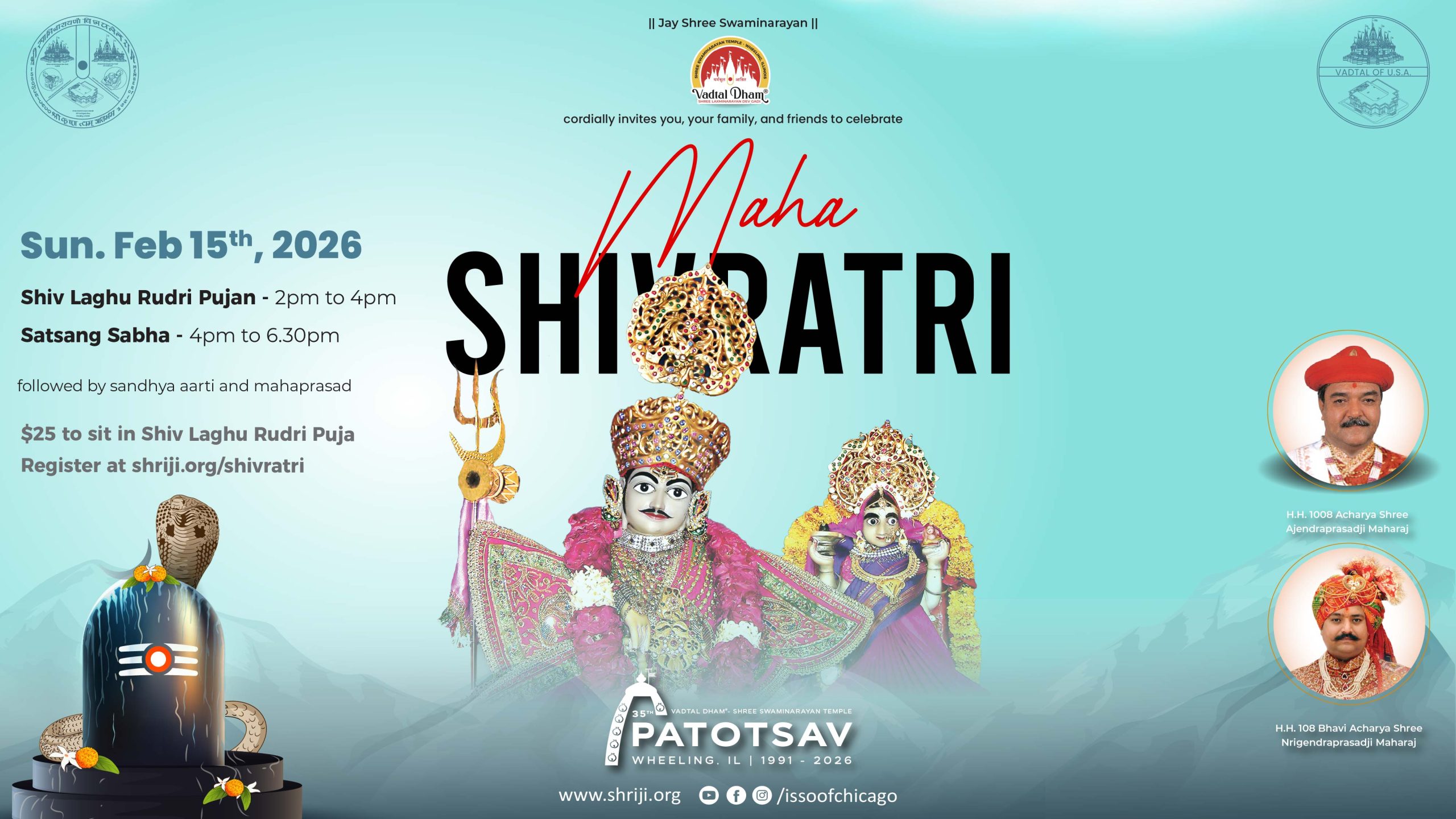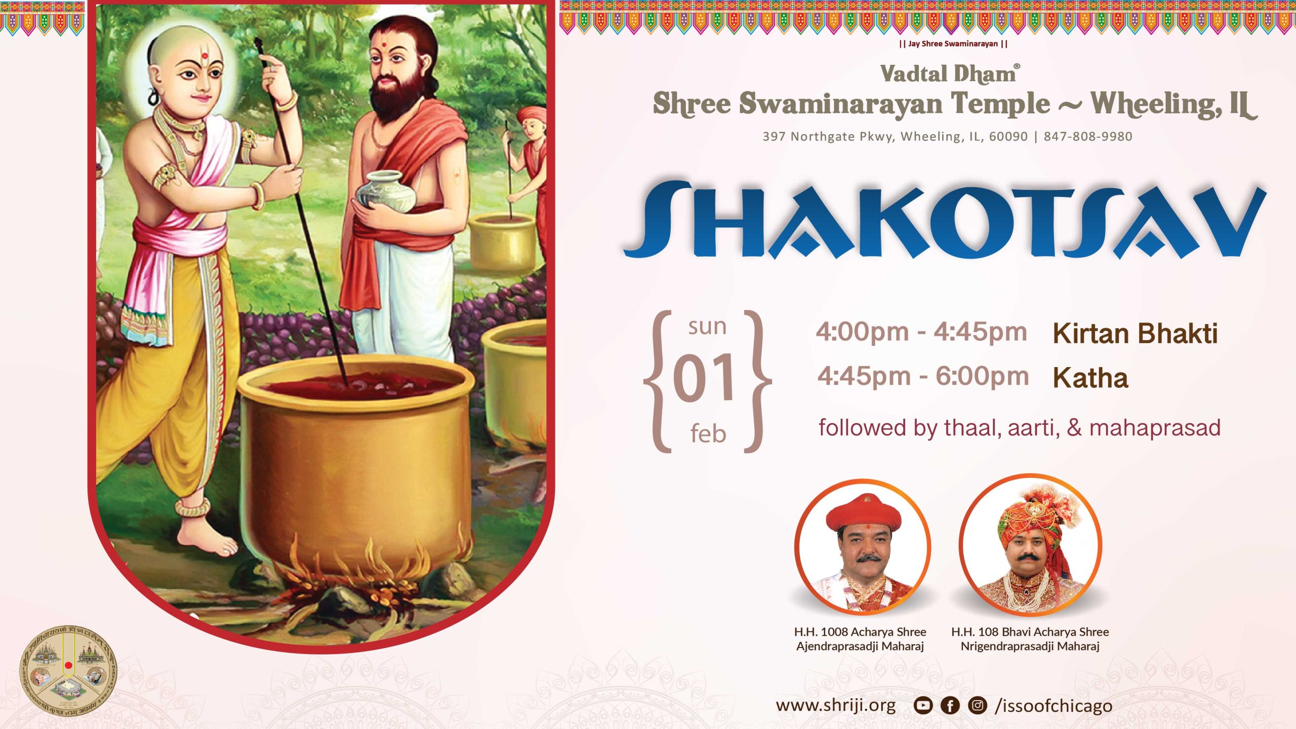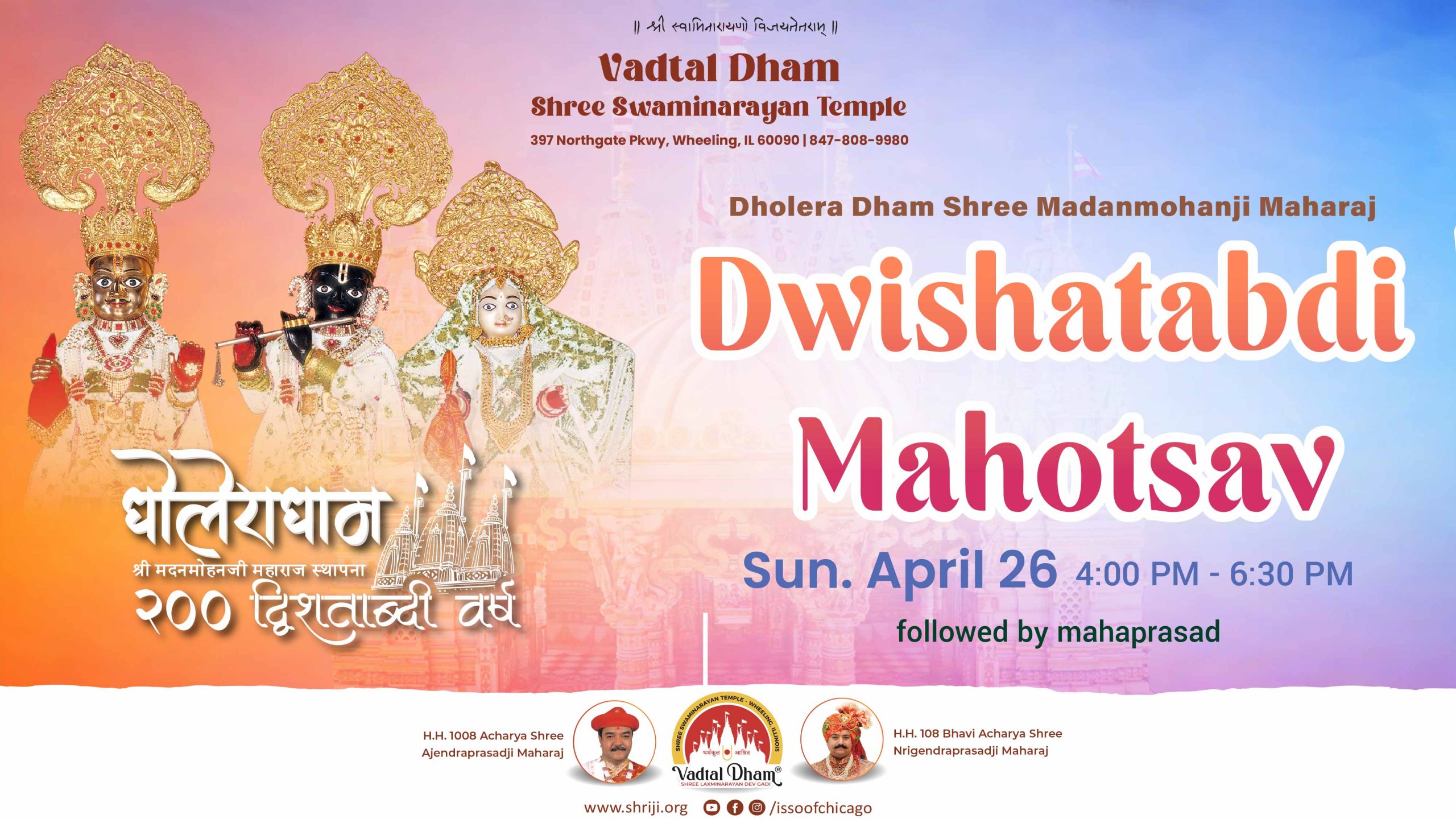 Learn who we are About us Visit about us page. Read More → Our Sampraday Learn more about our tradition and religious system. Read More → Our Kids Find out more about our kids, what they do and what they learn. Read More → Connect with Us Are you interested to know more about us? Please subscribe to our newsletter and join us on social medial platform to stay connected. Read More → Upcoming Events Top ↑ | View Full Calendar →
